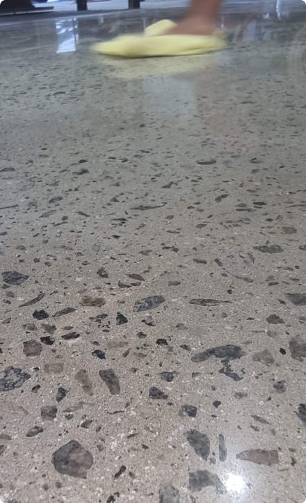For the Grind and Seal method, the price remains the same regardless of the gloss level you choose. However, for Mechanically Polished Concrete (MPC), there is a small increase in price as you move from matte to semi-gloss, and from semi-gloss to high gloss. This is because achieving a higher gloss level requires more time and effort as our team must polish the floor more times to reach the desired shine.